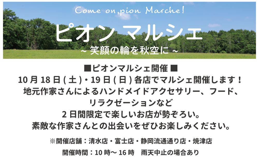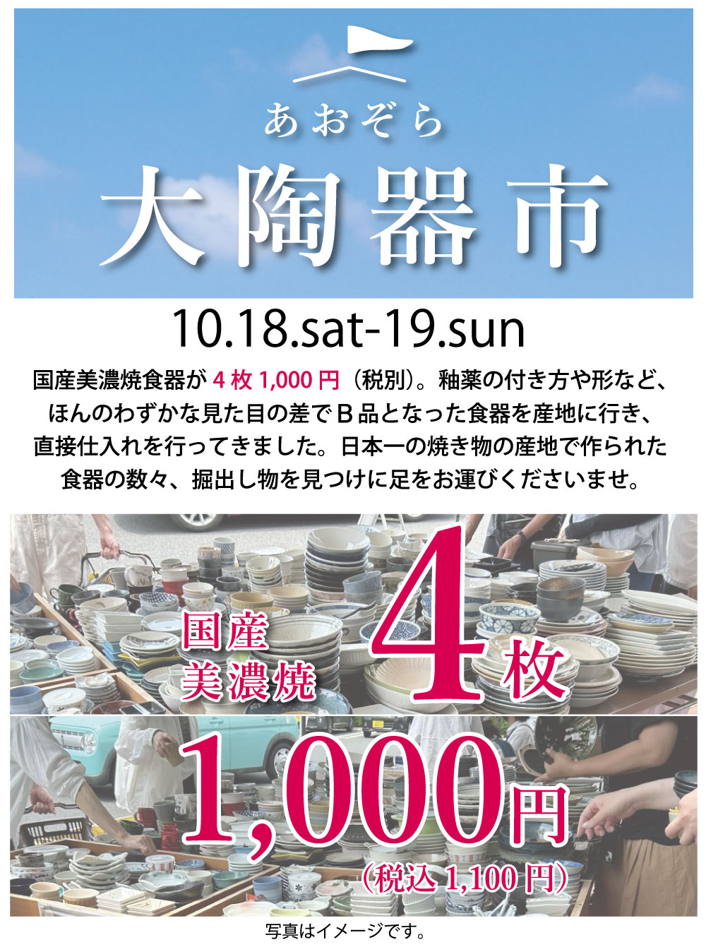食器4枚1000円!あおぞら大陶器市 & 洋服・バッグ・靴特別ご招待会 & ピオンマルシェ開催!